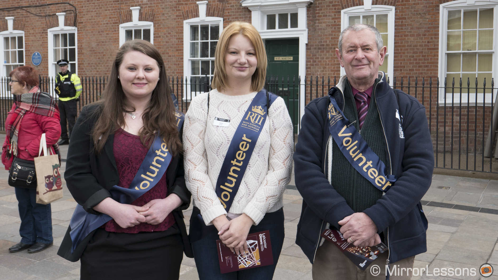 The following day was really an afterthought, but I was incredibly drawn to return to the cathedral on the day of the tomb being revealed to the public. I did not have an invitation to the service but was able to watch those that were and take some photos of people who were dressed in various garbs for the occasion. One family was dressed as 15th century townsfolk, another lady was richly dressed. I was also chatting to two of Leicestershire’s finest policemen and how they too, despite the long hours, were totally wrapped up in the proceedings. But the highlight was speaking to Matthew Morris and Richard Buckley. These two gentlemen found Richard in his priory grave and I was blessed with an excellent photograph of myself standing with both of them.