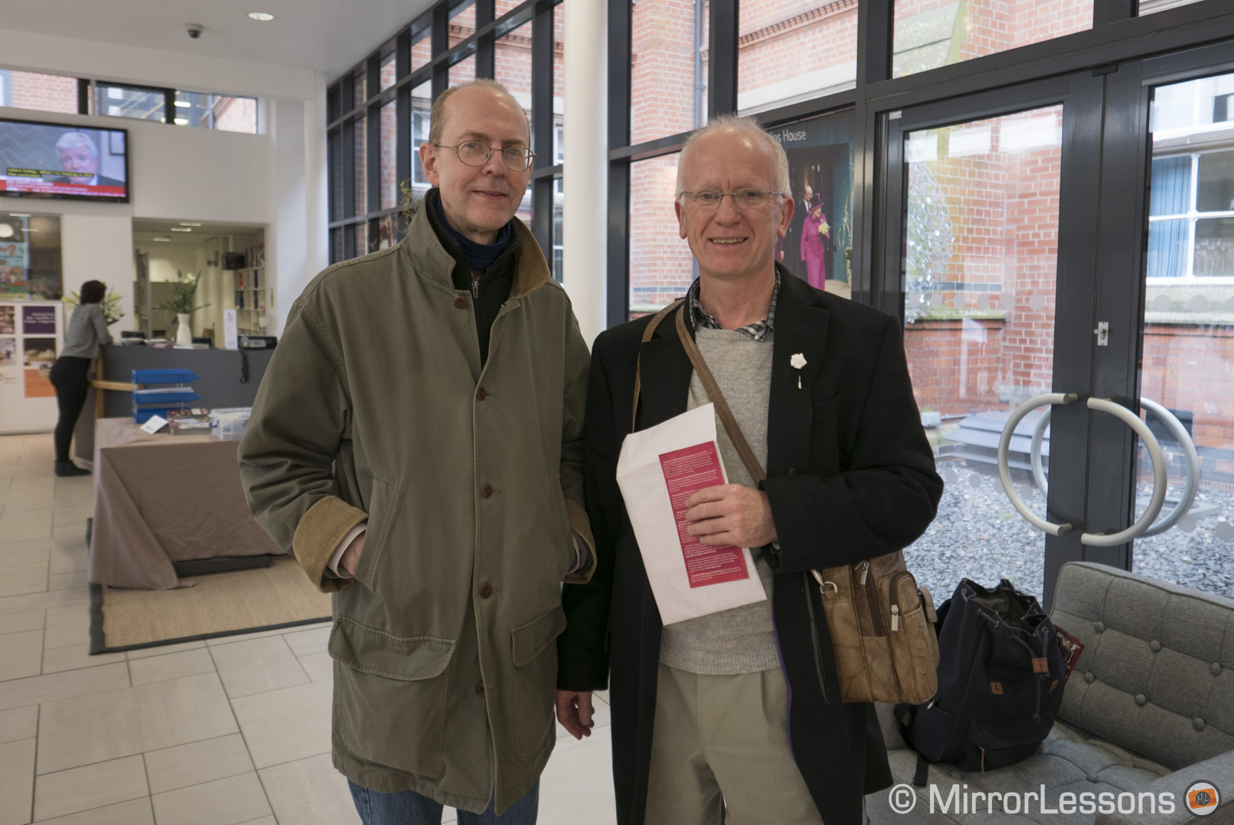 I moved into the St. Martin’s Centre and there was Michael Ibsen whose crucial DNA provided the link to Richard. We chatted and arranged selfies for posterity, a quiet man all the more subdued by the whirlwind that surrounded him. All this was captured on the LX100. After supper I returned to the cathedral and captured some lovely shots of the cathedral and the statue in the dark.